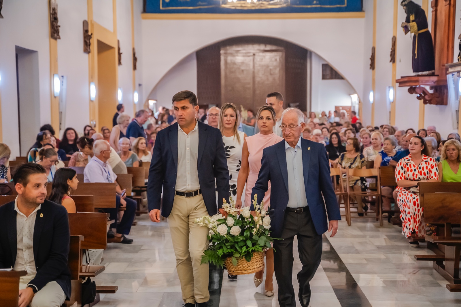 Una vez finalizada la misa, presidida por el párroco, Victoriano Montoya, se entregaron los nardos y rosas que engalanarán hoy lunes el trono para salir en procesión por las calles de Roquetas de Mar a partir de las ocho de esta tarde dentro de los cultos religiosos que se celebran con motivo de estas fiestas que cierran el calendario de fiestas patronales del municipio.